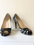 LK BENNETT SIGMA BLACK & WHITE ZEBRA PRINT PONYSKIN & LEATHER PEEPTOE HEELS SIZE 7/40