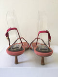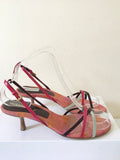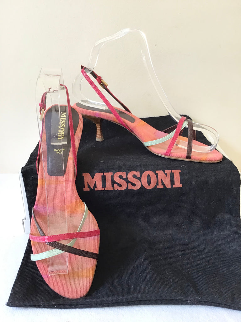 MISSONI DEEP PINK, LIGHT GREEN & BROWN STRAP KITTEN HEELED SANDALS