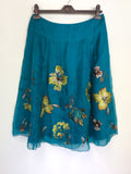 COAST KINGFISHER GREEN SILK EMBROIDERED SKIRT SIZE 12