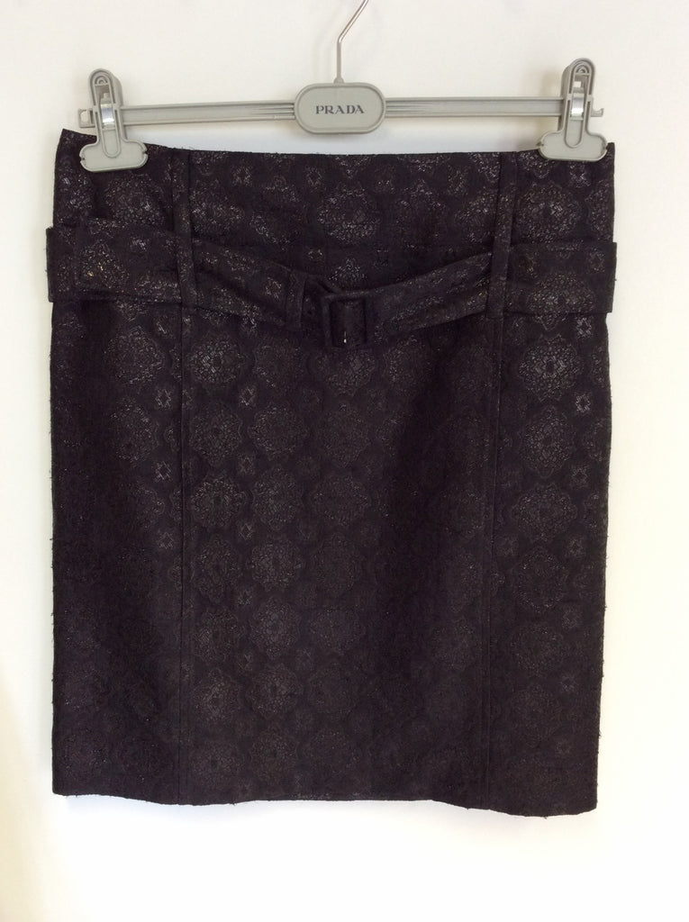 PRADA BLACK EMBOSSED SPARKLE PRINT BELTED PENCIL SKIRT SIZE 42 UK 10