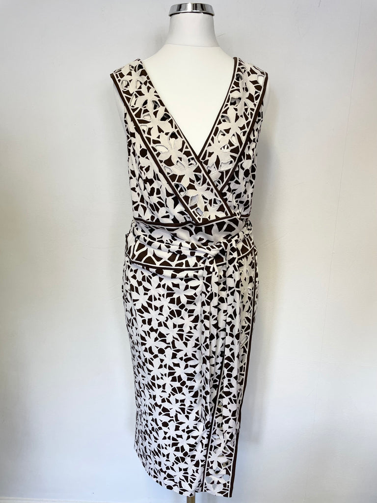 BRAND NEW DIANE VON FURSTENBERG WILLOW BROWN & IVORY PRINT SILK WRAP DRESS SIZE 10/12