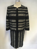 HOBBS BLACK & GREY MARL STRIPED SHORT SLEEVE PENCIL DRESS & JACKET SIZE 10