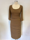 JAMES LAKELAND TAN 3/4 LENGTH SLEEVE PENCIL DRESS SIZE 10