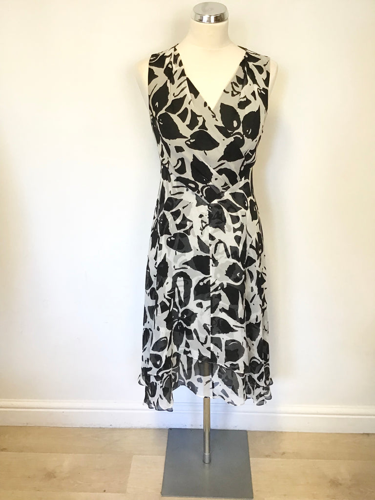 LK BENNETT BLACK & WHITE PRINT SILK SLEEVELESS FLOATY SPECIAL OCCASION DRESS