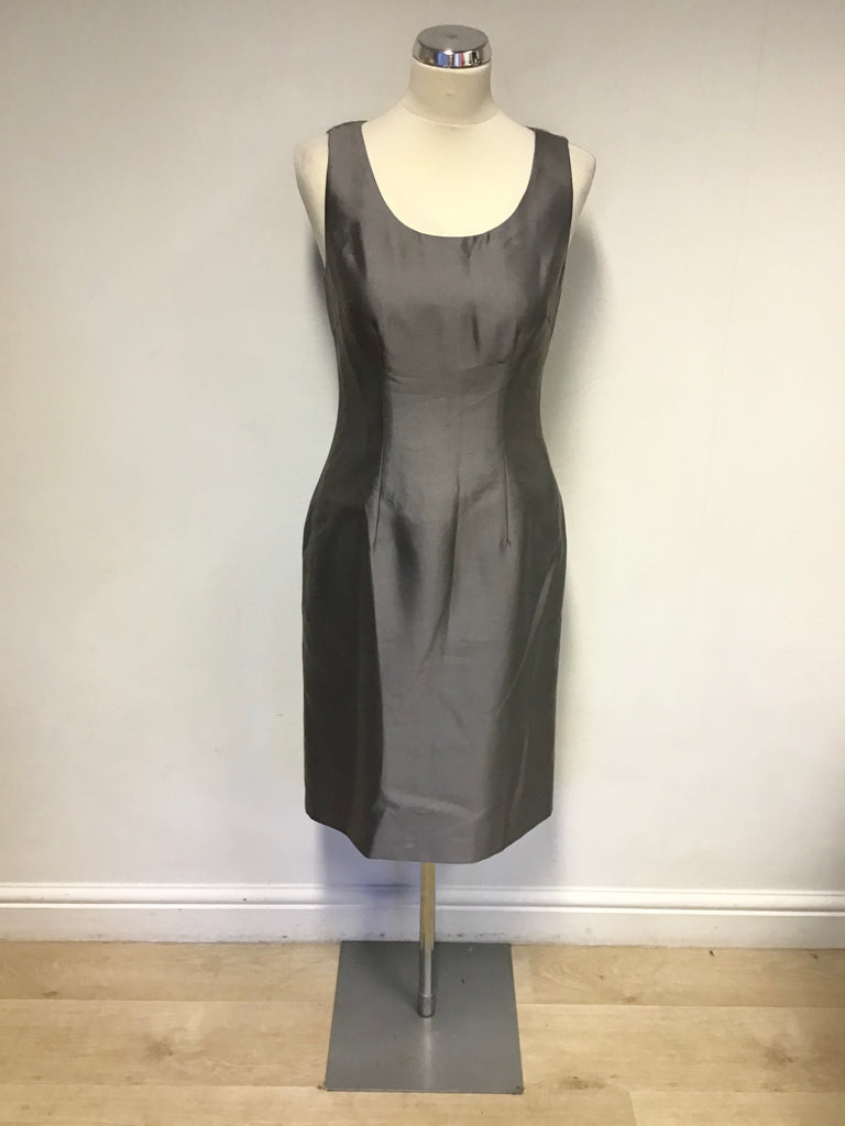 LK BENNETT SILVER GREY SLEEVELESS SILK & WOOL BLEND PENCIL DRESS SIZE 10
