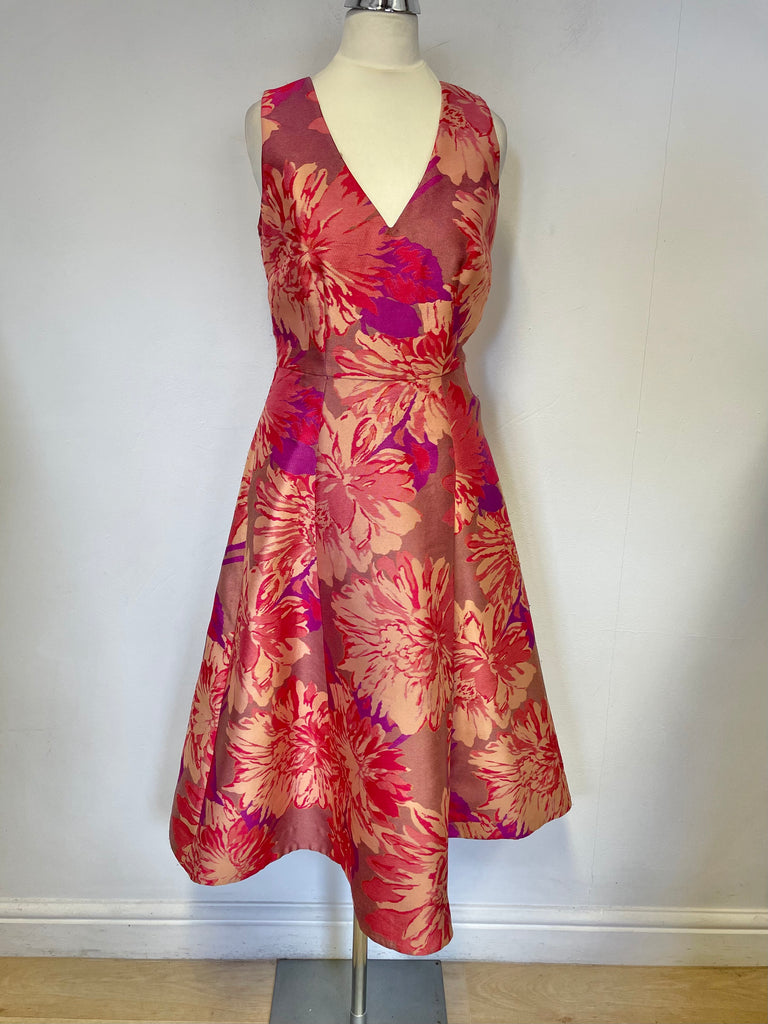 MONSOON CORAL & PINK FLORAL PRINT SLEEVELESS FIT & FLARE DRESS SIZE 8