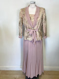 LUIS CIVIT DUSKY PINK & PALE GOLD BROCADE TOP, FITTED JACKET & LONG SKIRT OUTFIT SIZE 14