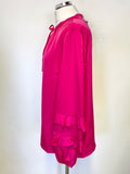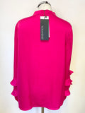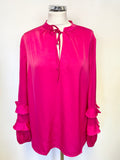 BRAND NEW SOSANDAR HOT PINK SATIN RUFFLE SLEEVE TIE NECK TOP SIZE 14