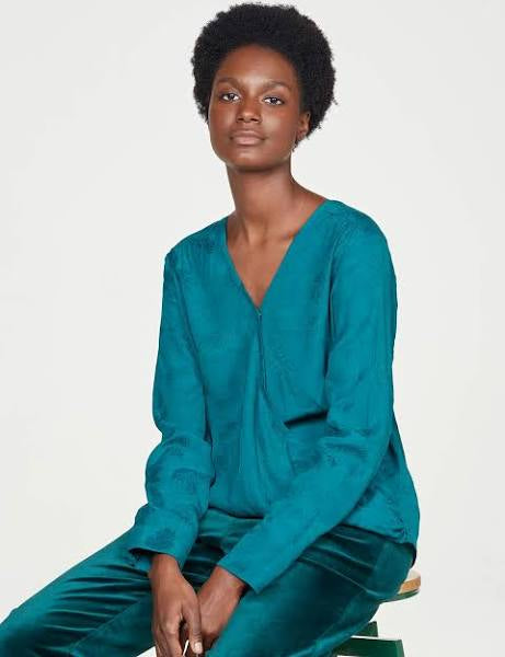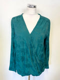 BRAND NEW THOUGHT MALACHITE GREEN WRAP FRONT LONG SLEEVED TOP SIZE 10