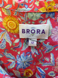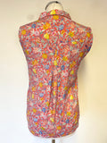 BRORA RED & MULTI COLOURED FLORAL PRINT COLLARED SLEEVELESS TOP SIZE 10