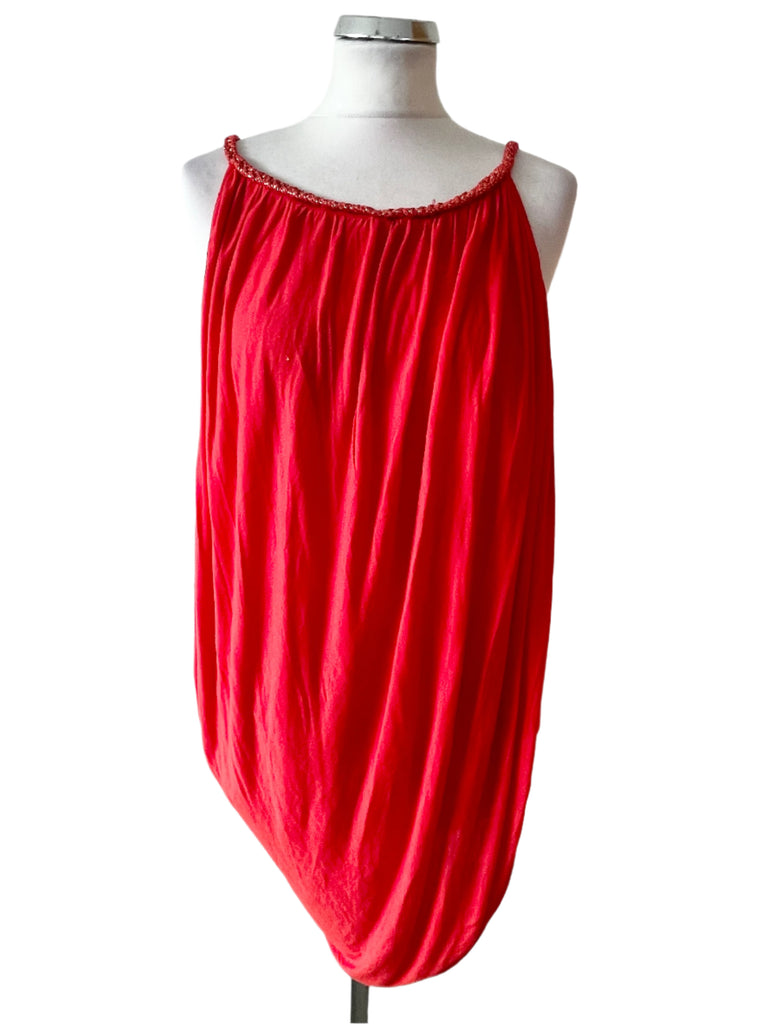 COAST CORAL ASYMMETRIC DRAPE SLEEVELESS PLAITED STRAPS TOP SIZE 14