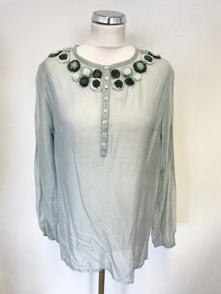 DAY BY BIRGER ET MIKKELSEN LIGHT GREEN APPLIQUE FLOWER TRIM LONG SLEEVED TOP