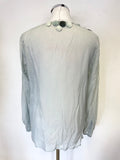 DAY BY BIRGER ET MIKKELSEN LIGHT GREEN APPLIQUE FLOWER TRIM LONG SLEEVED TOP SIZE M
