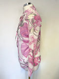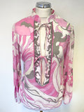 EMILIO PUCCI WHITE, PINK, GREY & LEMON ABSTRACT PRINT COTTON TIE FRONT TOP/SHIRT SIZE 8