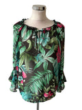 GERRY WEBER GREEN & PINK FLORAL PRINT 3/4 SLEEVED TOP SIZE 14