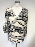 JAEGER CREAM & BLACK PRINT V NECK 3/4 SLEEVED TOP SIZE 6