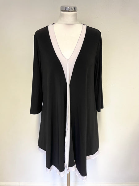 JOSEPH RIBKOFF BLACK & WHITE TRIMMED 3/4 SLEEVE TUNIC TOP