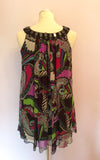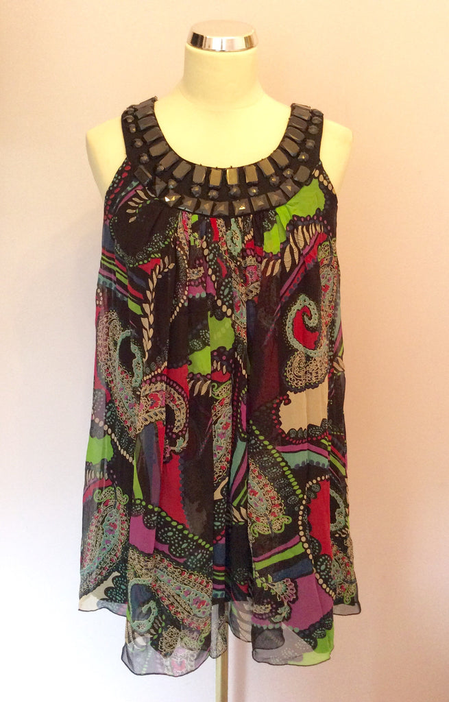 Lipsy Jewel Trim Scoop Neck Multi Coloured Silk Top Size 8