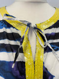 LUISA CERANO BLUE & WHITE WITH YELLOW SEQUIN TRIMMED TUNIC TOP