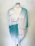MARBLE TURQUOISE & WHITE RELAXED FIT ZIP FRONT SHORT BATWING SLEEVED TOP SIZE 2 /M