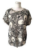 MARCCAIN BLACK & CREAM FOX GRAPHIC FRONT SHORT SLEEVE TOP SIZE N4 UK 14/16