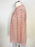 MINT VELVET BEIGE & PINK HORSE PRINT 3/4 SLEEVE SMOCK TOP/ BLOUSE SIZE