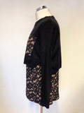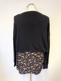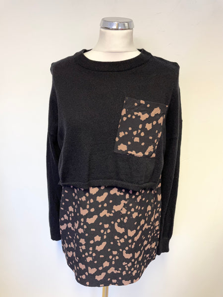 MINT VELVET BLACK & TAN PRINT TUNIC TOP WITH BLACK KNIT OVER CROP OVER JUMPER SIZE 10