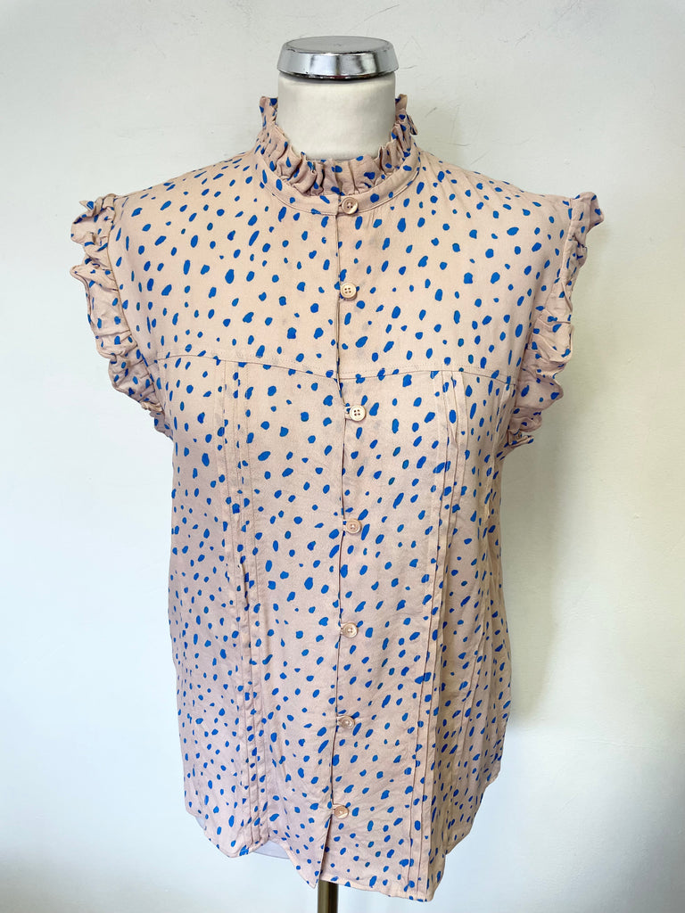 PAUL SMITH PINK & TURQUOISE SPOT PRINT SLEEVELESS TOP SIZE M