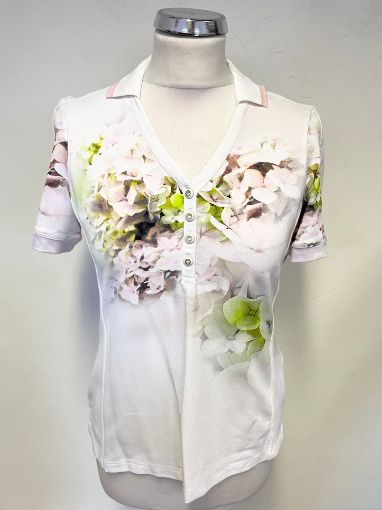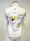 SPORTALM GOLF WHITE FLORAL PRINT COLLARED SHORT SLEEVE TOP SIZE 10