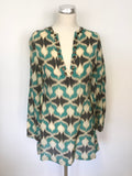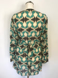 TED BAKER CREAM, GREEN & BLACK PRINT LONG SLEEVED TUNIC TOP
