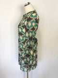 TED BAKER CREAM,GREEN & BLACK PRINT JEWEL TRIM LONG SLEEVE TUNIC TOP SIZE 1 UK 8/10