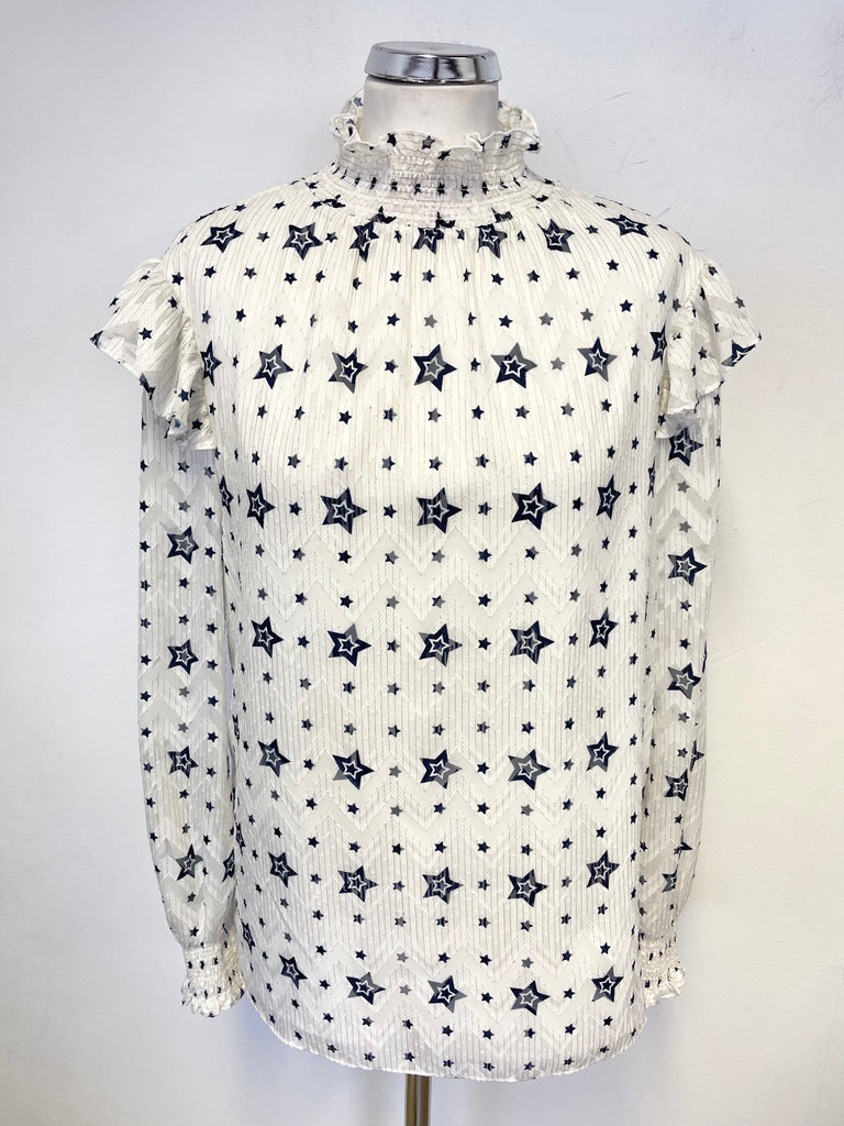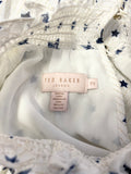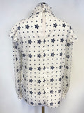 TED BAKER ELLAH WHITE & NAVY STAR PRINT LONG SLEEVED BLOUSE SIZE 2 UK 10/12