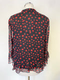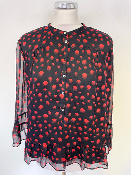 WHISTLES BLACK & RED SPOT PRINT 3/4 SLEEVE FRILL TRIM BLOUSE SIZE 12