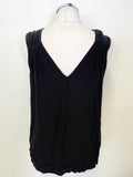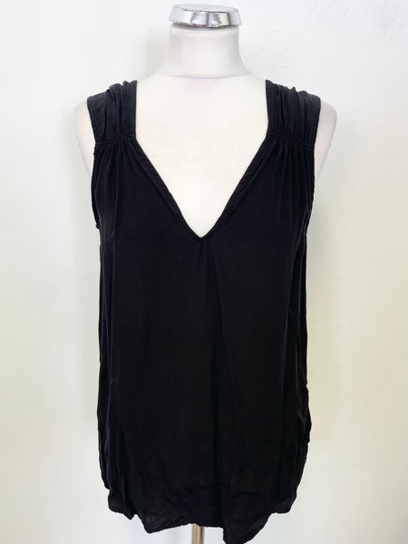 WHISTLES BLACK V NECK SLEEVELESS GATHERED SHOULDER TOP SIZE 12