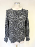 WHISTLES BLUE & BLACK PRINT JERSEY LONG PUFF SLEEVED TOP SIZE S