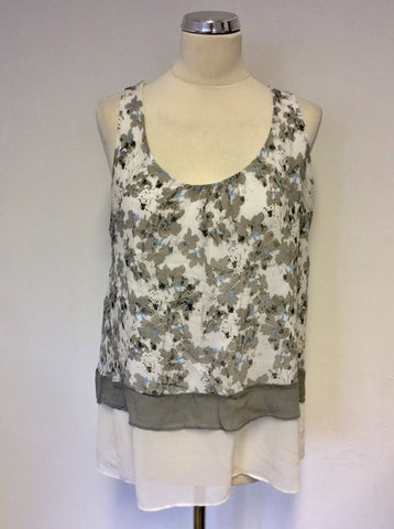 MINT VELVET GREY & WHITE FLORAL PRINT SLEEVELESS TOP