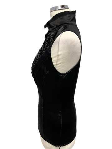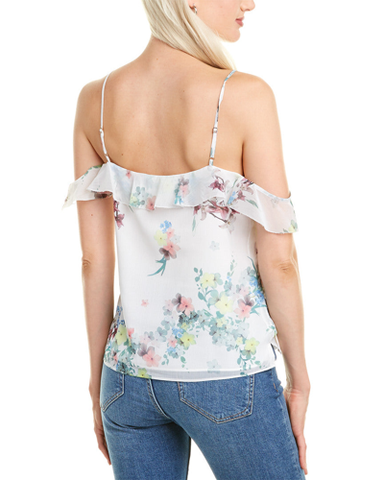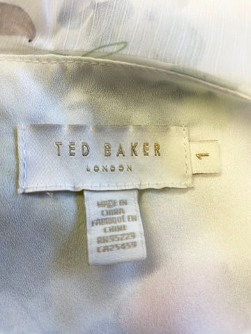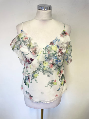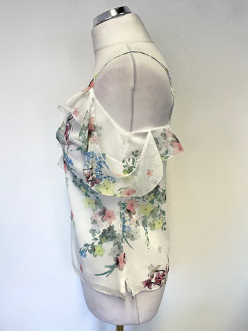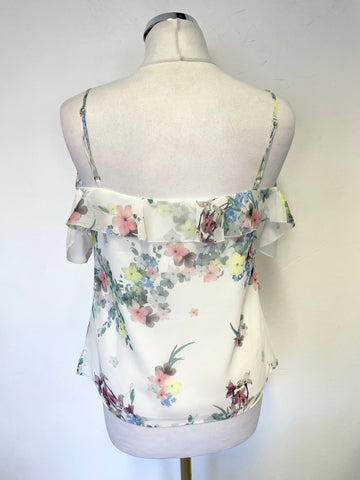 TED BAKER MEEYAH WHITE FLORAL PRINT FRILL TRIM SHOE STRING STRAP TOP SIZE 1 UK 8/10