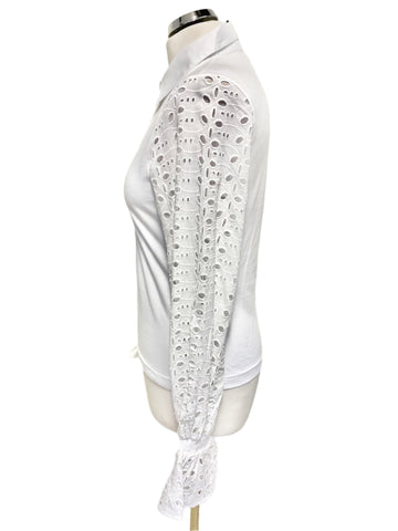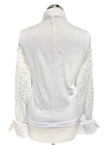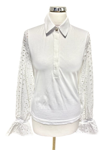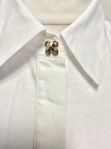 SPORTALM LEMONIE WHITE WITH GOLD METALLIC & NAVY TRIM 3/4 SLEEVED TOP SIZE 8