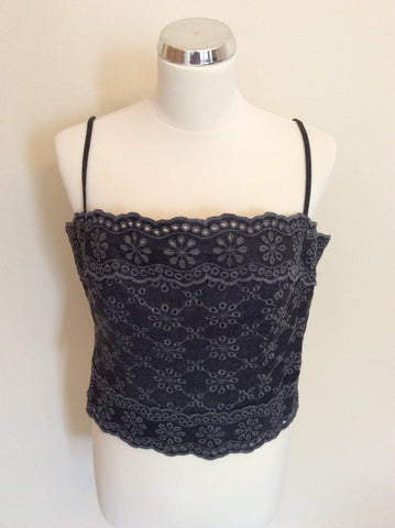 BRAND NEW KAREN MILLEN NAVY BLUE FINE KNIT SLEEVELESS TOP SIZE XS