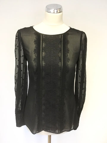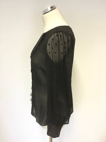 LK BENNETT ARLO BLACK & WHITE SPOT LONG SLEEVE TOP SIZE 10