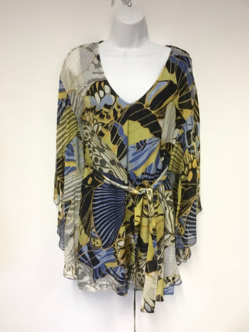 ADINI DARK MIDNIGHT BLUE FLORAL PRINT LIGHTWEIGHT JACKET/TOP SIZE L