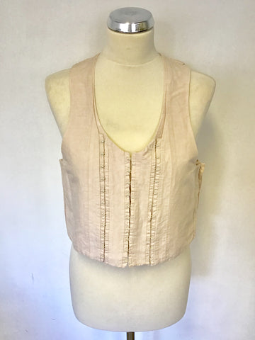 TED BAKER ORANGE DATE MICRO PLEATED SLEEVELESS TOP SIZE 1 UK 8/10