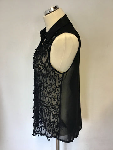 LK BENNETT BLACK SLEEVELESS SILKY PANEL SLEEVELESS TOP SIZE 10