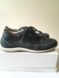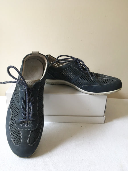 GABOR DARK BLUE MOLESKIN LEATHER LACE UP COMFORT FLATS SIZE 4.5/37.5