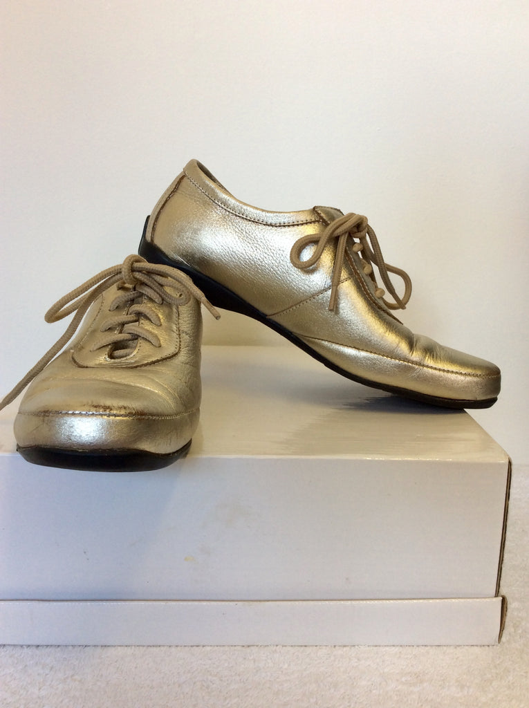 PADDERS PALE GOLD LEATHER LACE UP FLATS SIZE 4/37