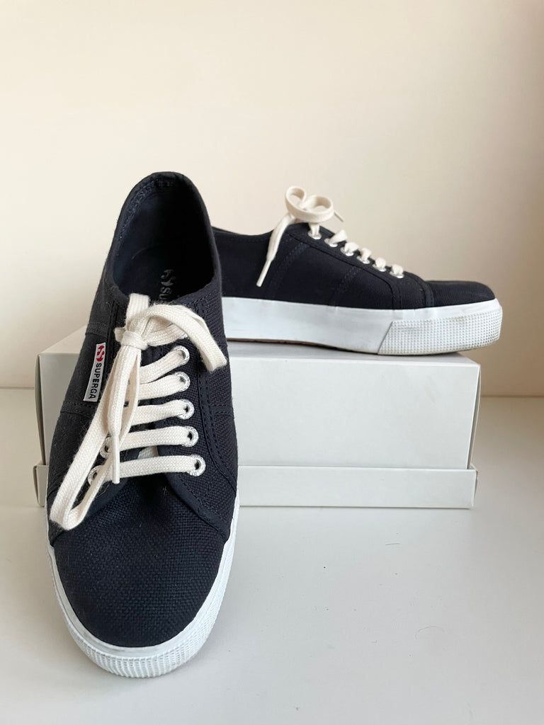 SUPERGA COTU BLACK CANVAS PLIMSOLS/ TRAINERS SIZE 6/39