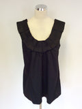 ZARA BLACK PLEATED EDGE TRIM SLEEVELESS TOP SIZE L