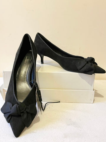 BRAND NEW ZARA BLACK SUEDE BOW TRIM KITTEN HEELS SIZE 7/40