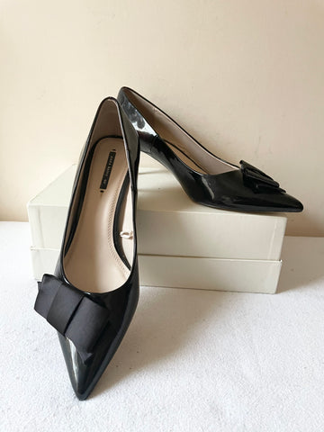 BRAND NEW ZARA BLACK PATENT BOW TRIM KITTEN HEELS SIZE 7/40