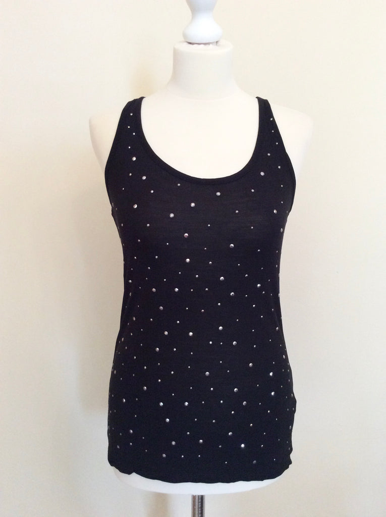2 X REISS BLACK & BEIGE STUDDED RACER BACK VEST TOPS SIZE S,XS